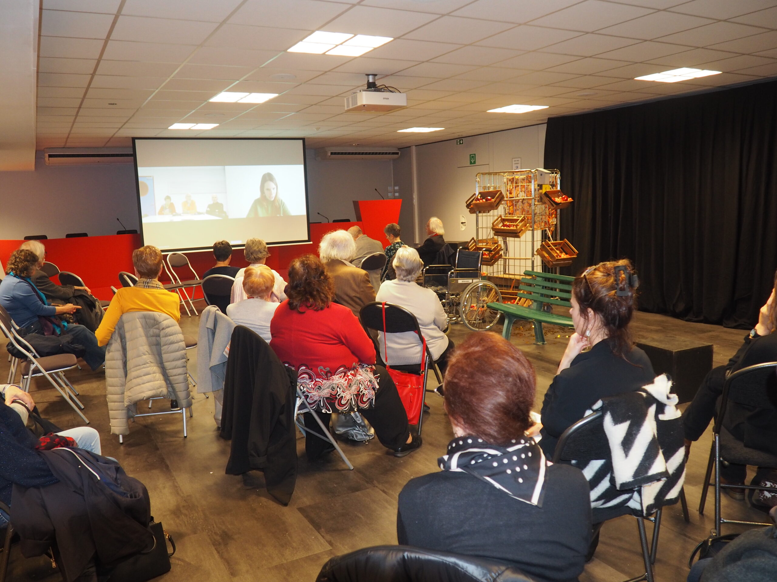 La CPP de Liège organise régulièrement des activités théâtre-débat et celle de ce 14 novembre avait comme ligne de mire : « Retraités, mais pas en retrait ». Elle donna l’opportunité aux membres présents d’échanger leurs points de vue à l’issue du spectacle ainsi que de prendre connaissance des objectifs du projet Interreg cité plus haut via une visio-conférence diffusant un entretien avec Sarah Schroyen, chercheuse à l’Unité de Psychologie de la Sénescence et collaboratrice pour l’ULiège du projet Interreg cité.